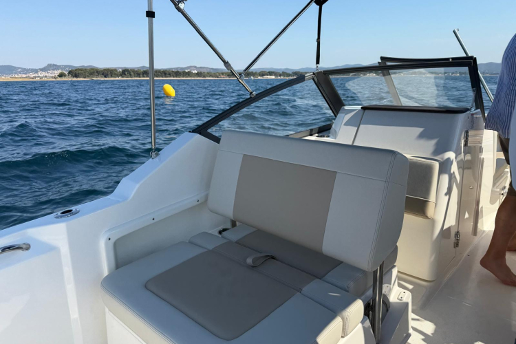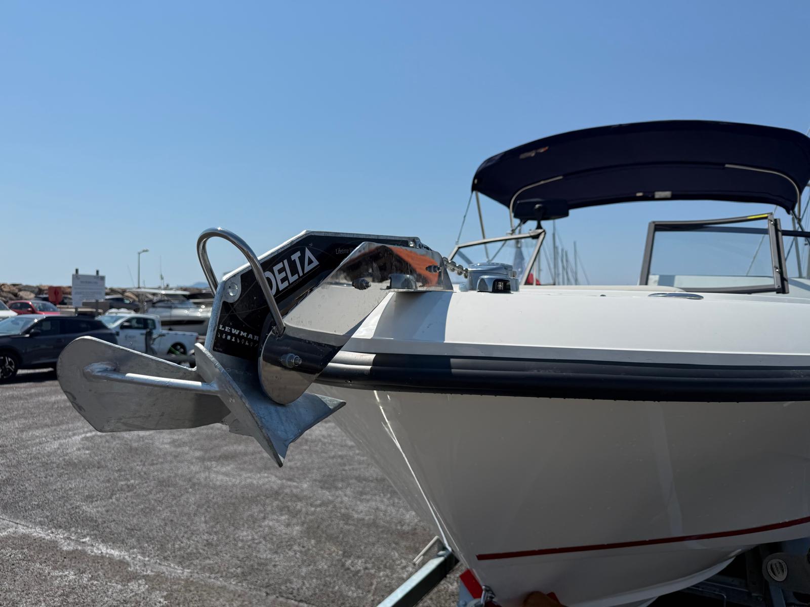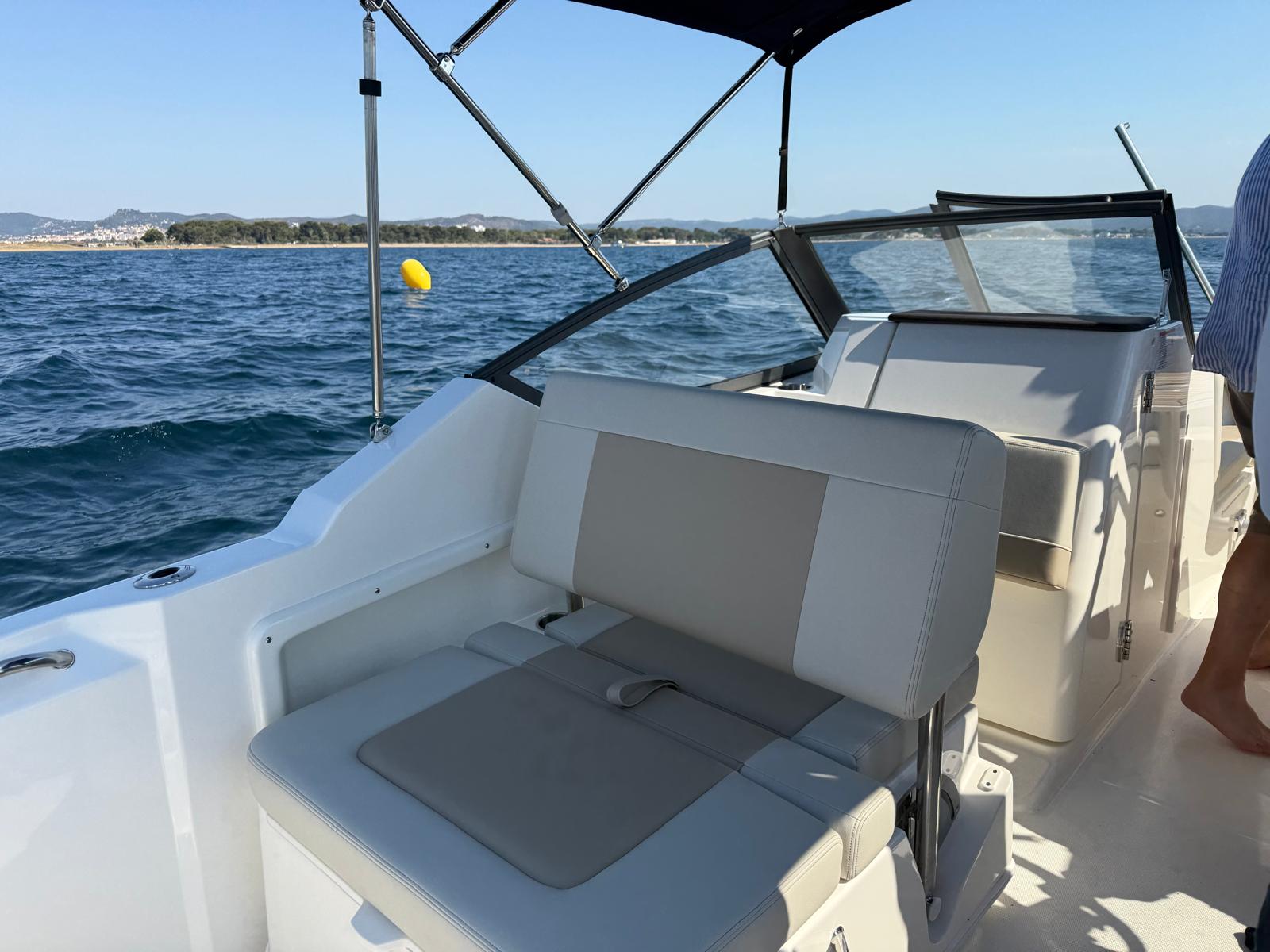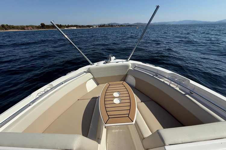 Couleurs : gel coat blanc ; moteur blanc, logos rouges, tauds bleu marine