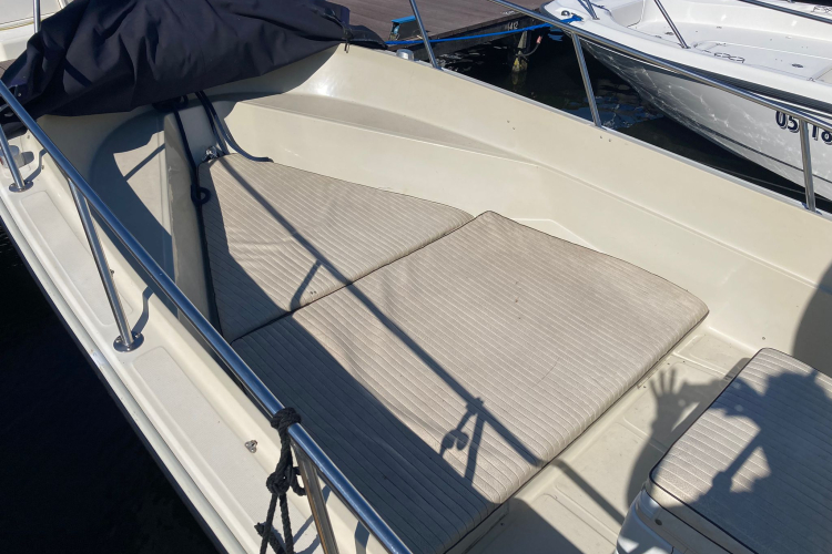 Equipements et options : coussin de bain de soleil avant, leaning post , siège glacière, taud d'hivernage, bimini top inox.