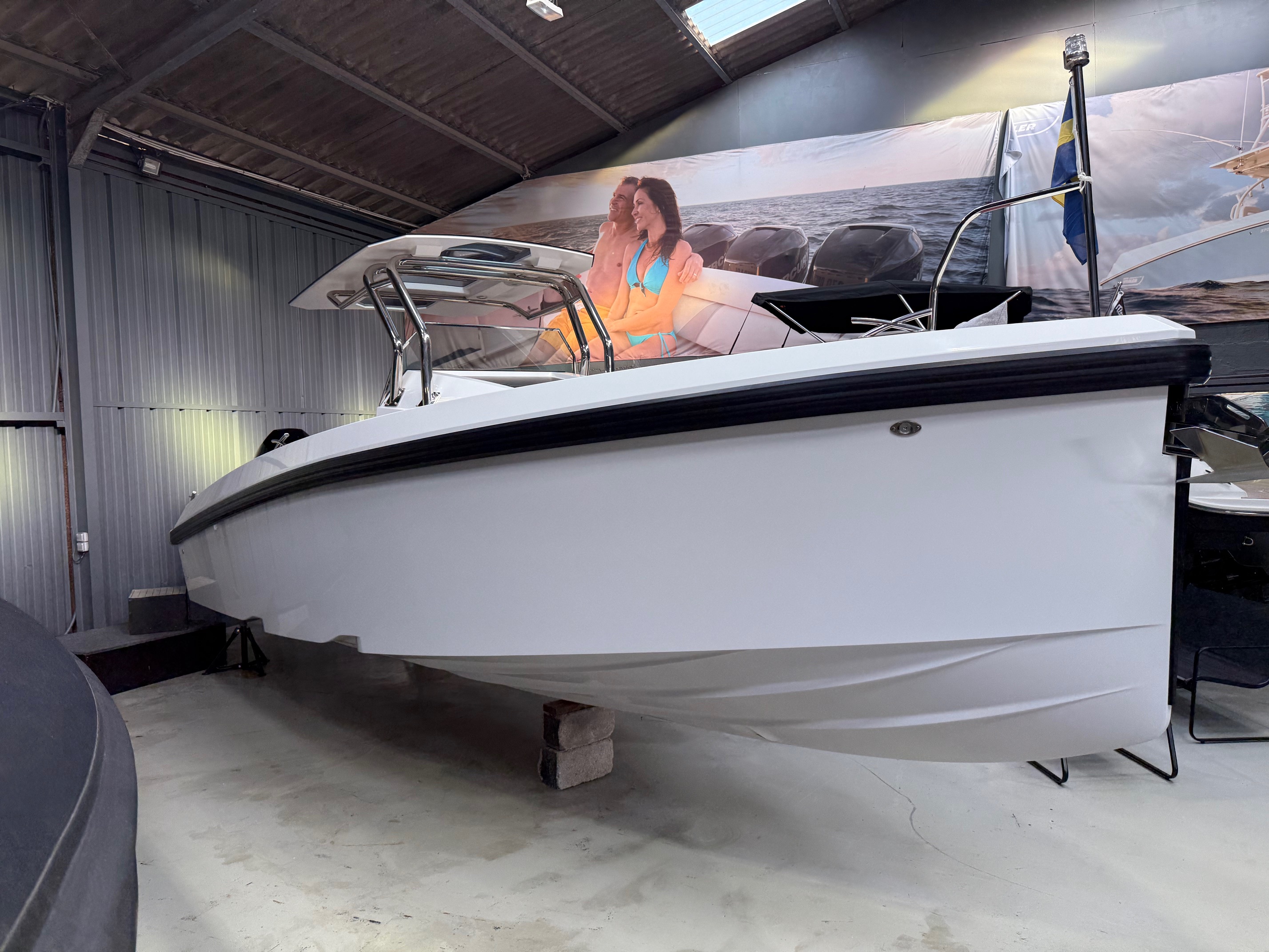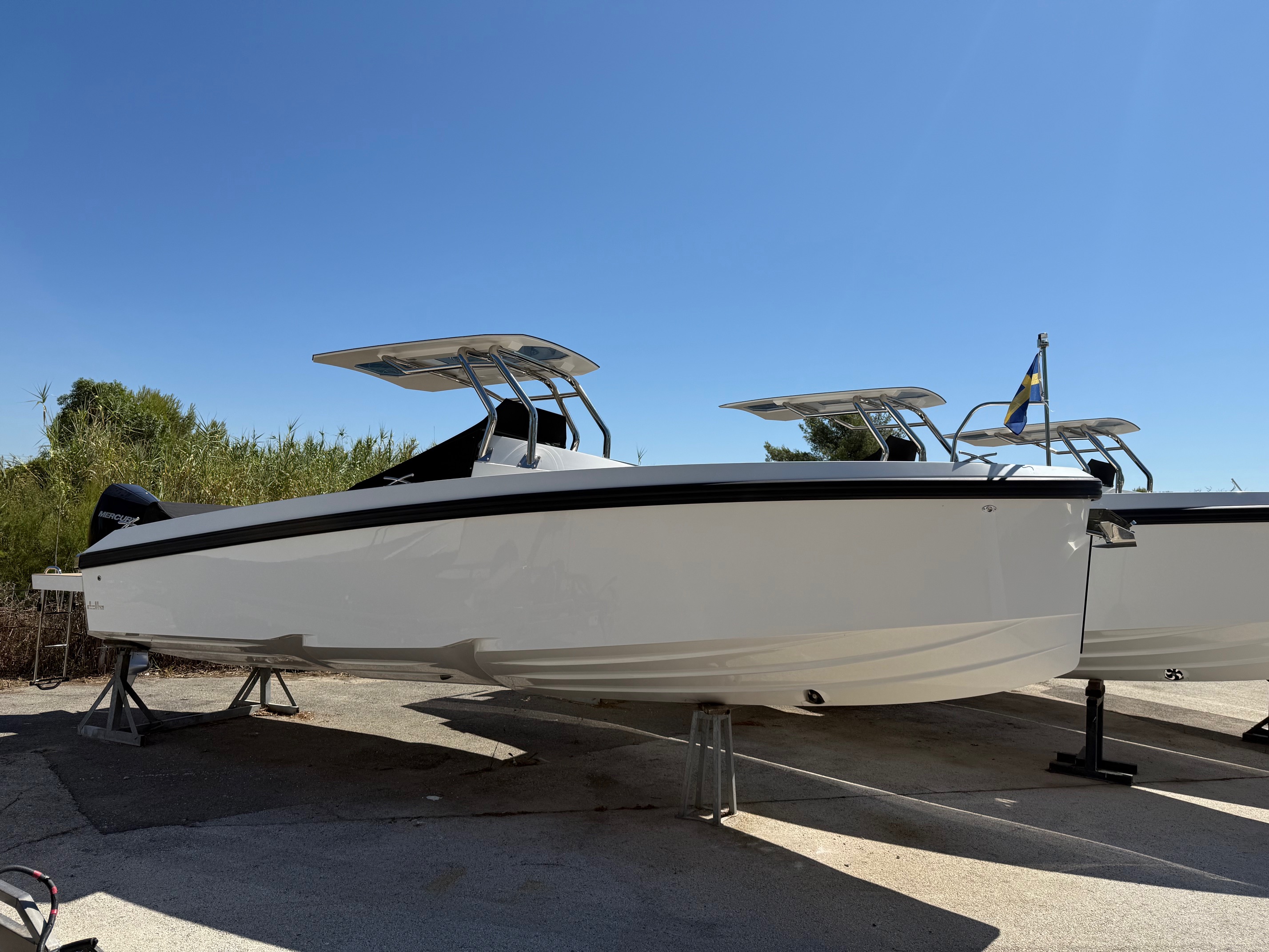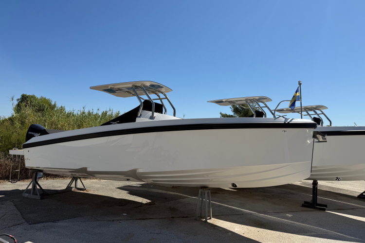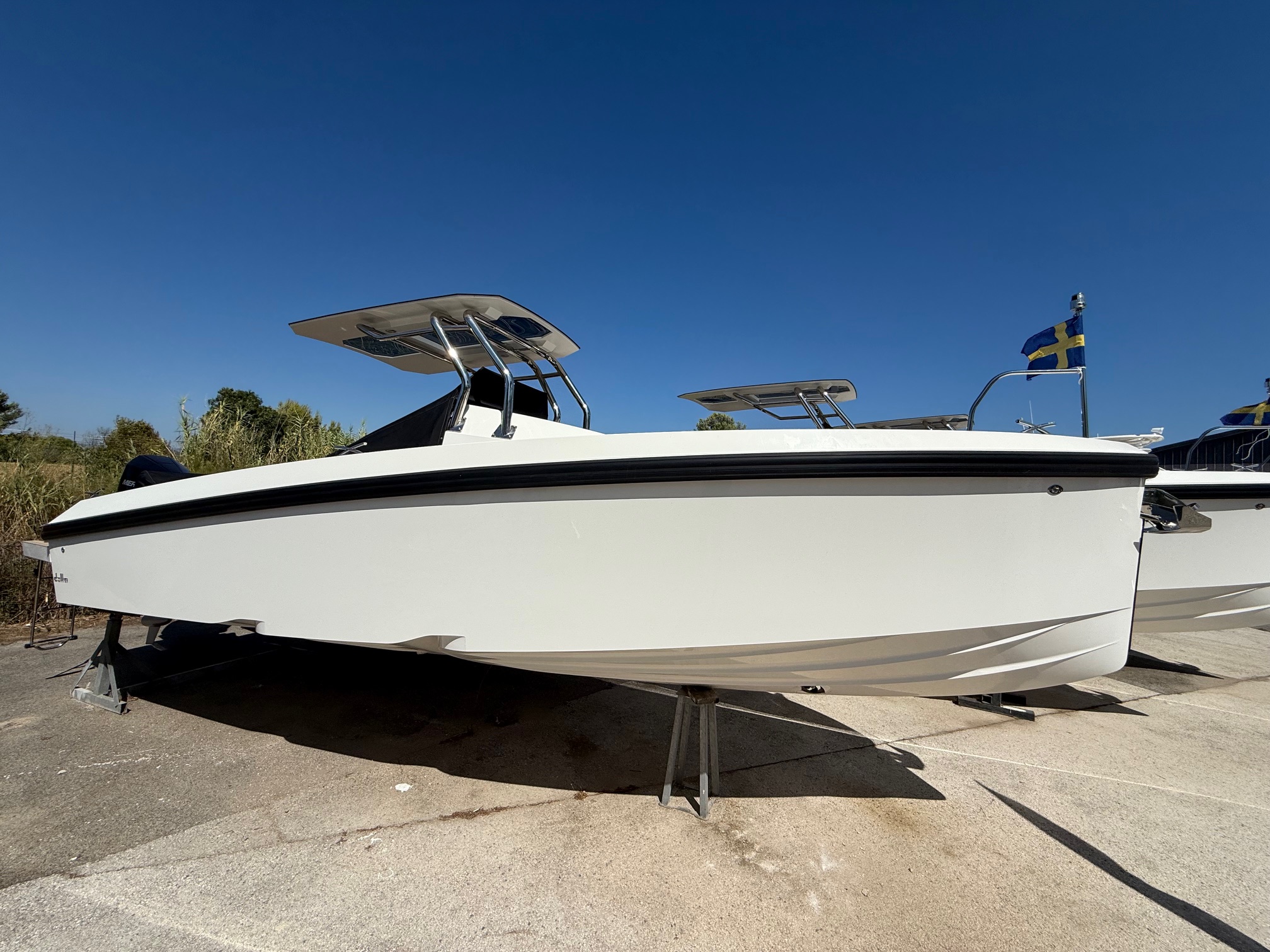 Options : guindeau électrique avec mouillage, sound system FUSION, T TOP inox, chargeur de batteries avec prise de quai,extention de taud de soleil arrière, WC électriques.