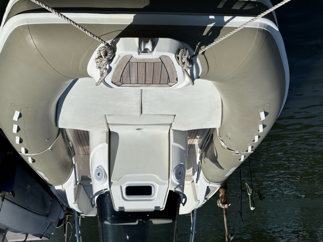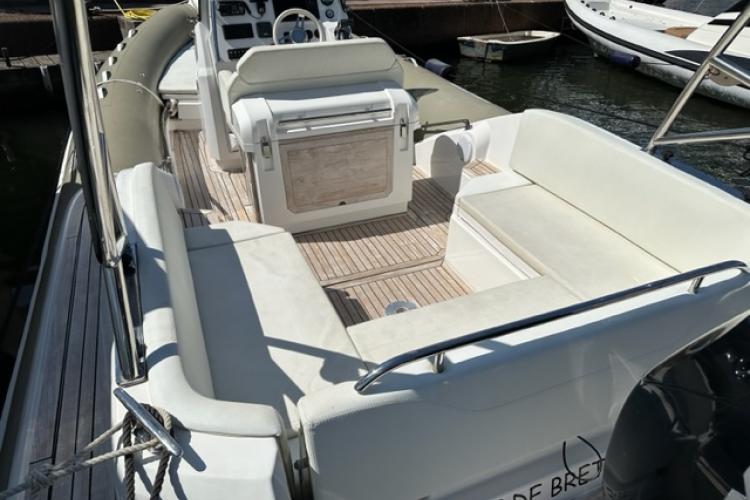 Equipements et options : guindeau électrique, bain de soleil avant, carré arrière avec table, console avec douche et WC marins, roll bar inox avec bimini, plateformes de bain, cockpit complet teck.