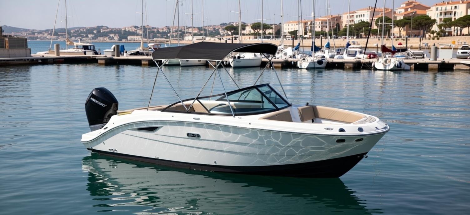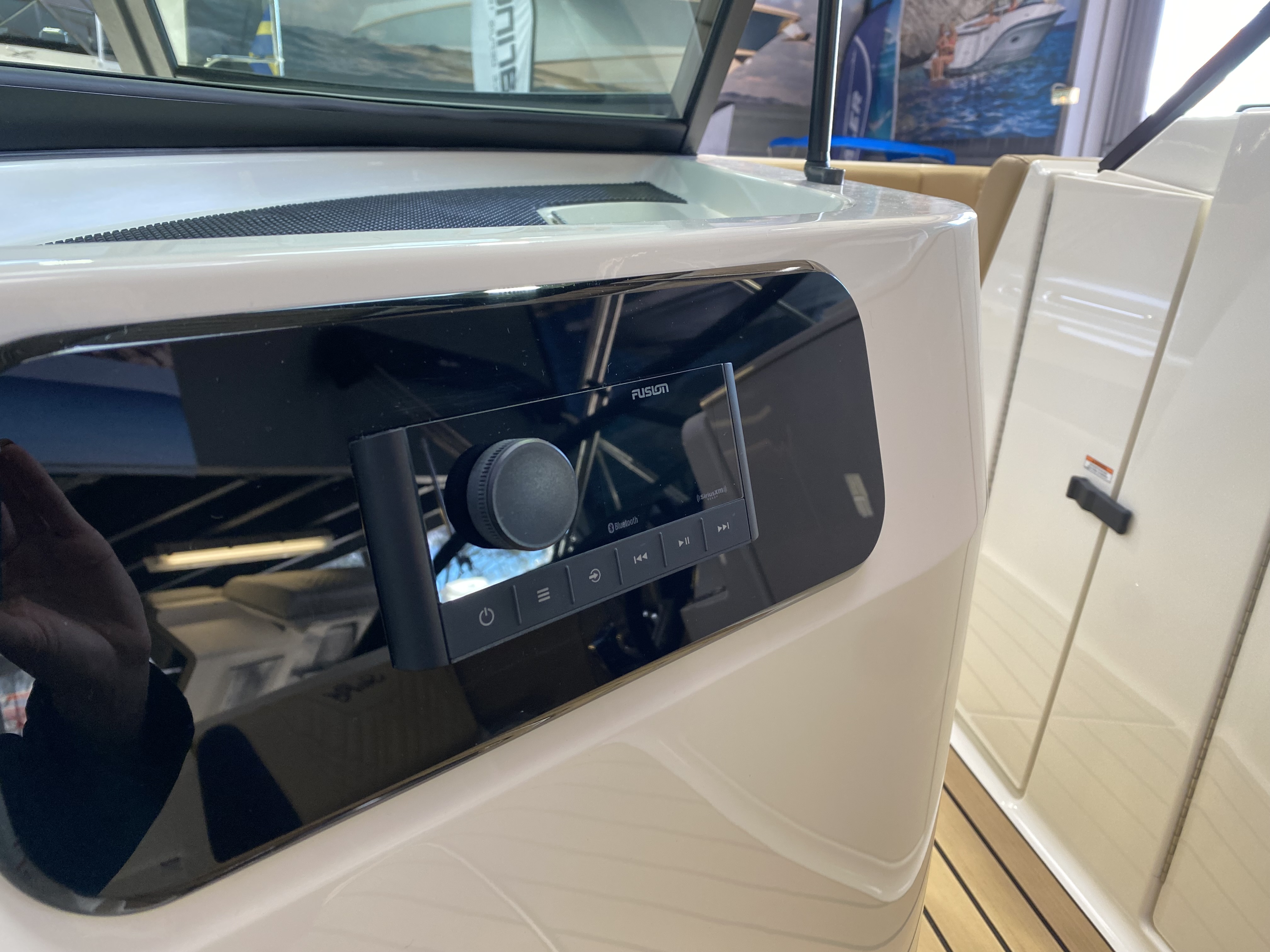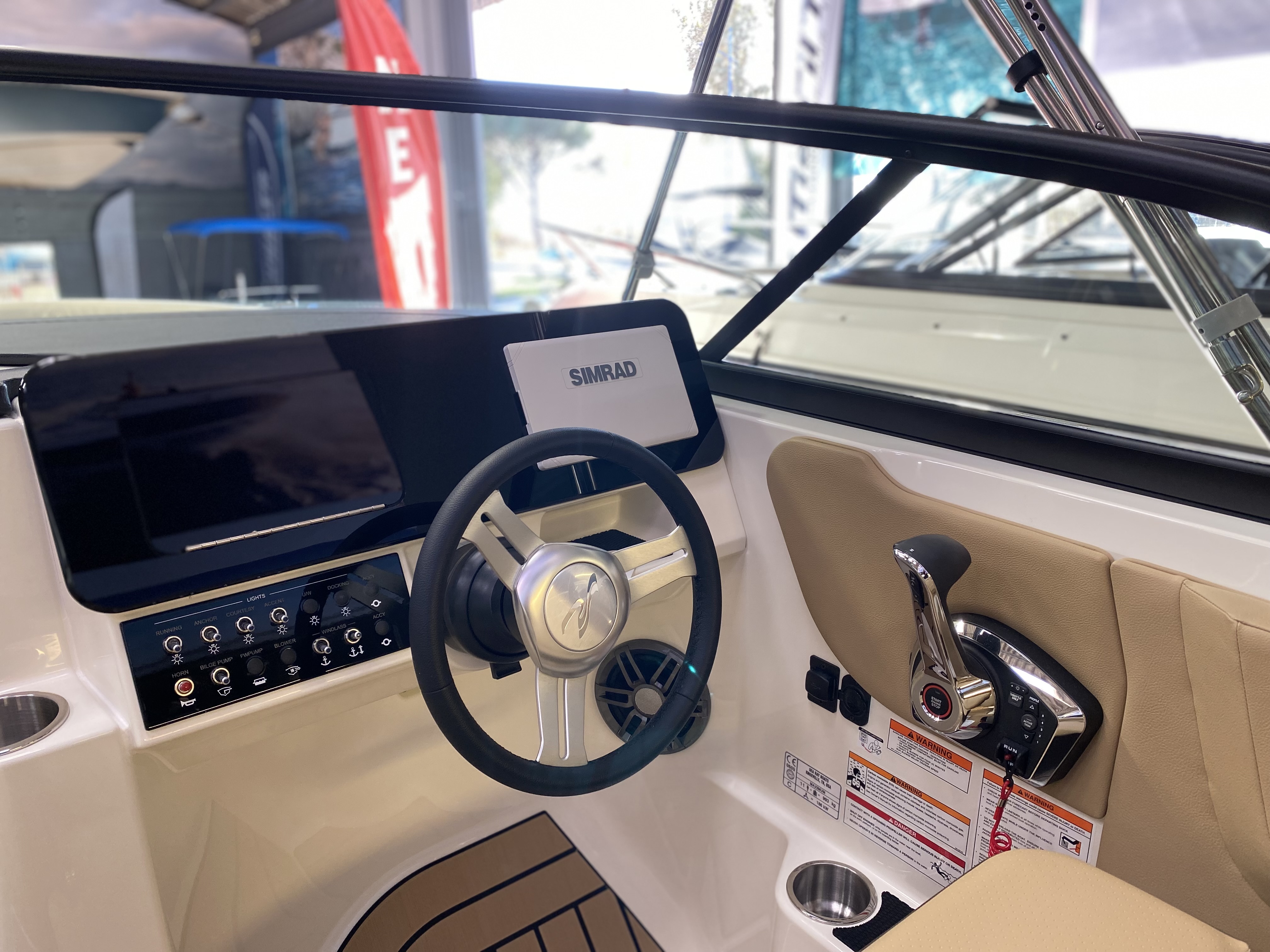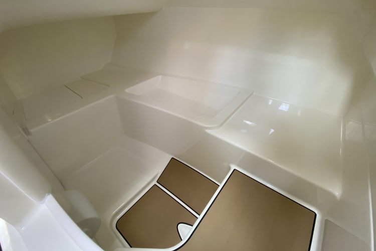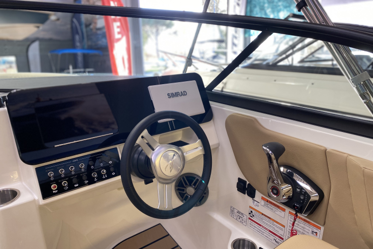 Configuration : Runabout avec salon avant et grand bain de soleil arrière. Vaste cockpit très convivial, console bâbord. Coffres de rangement sous tous les sièges.