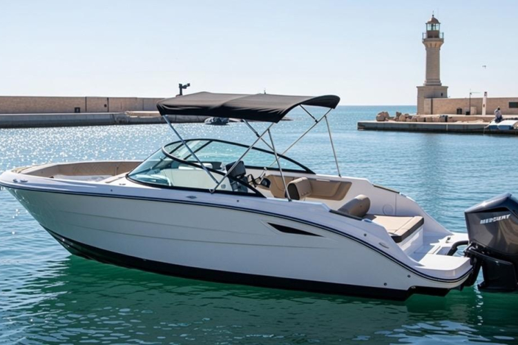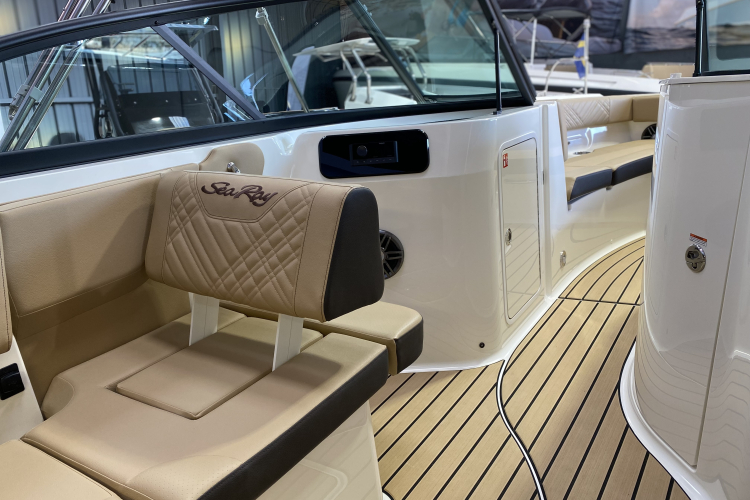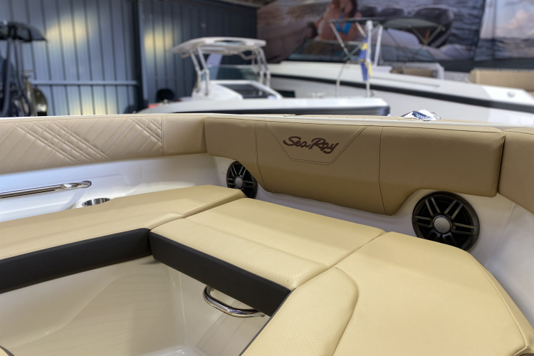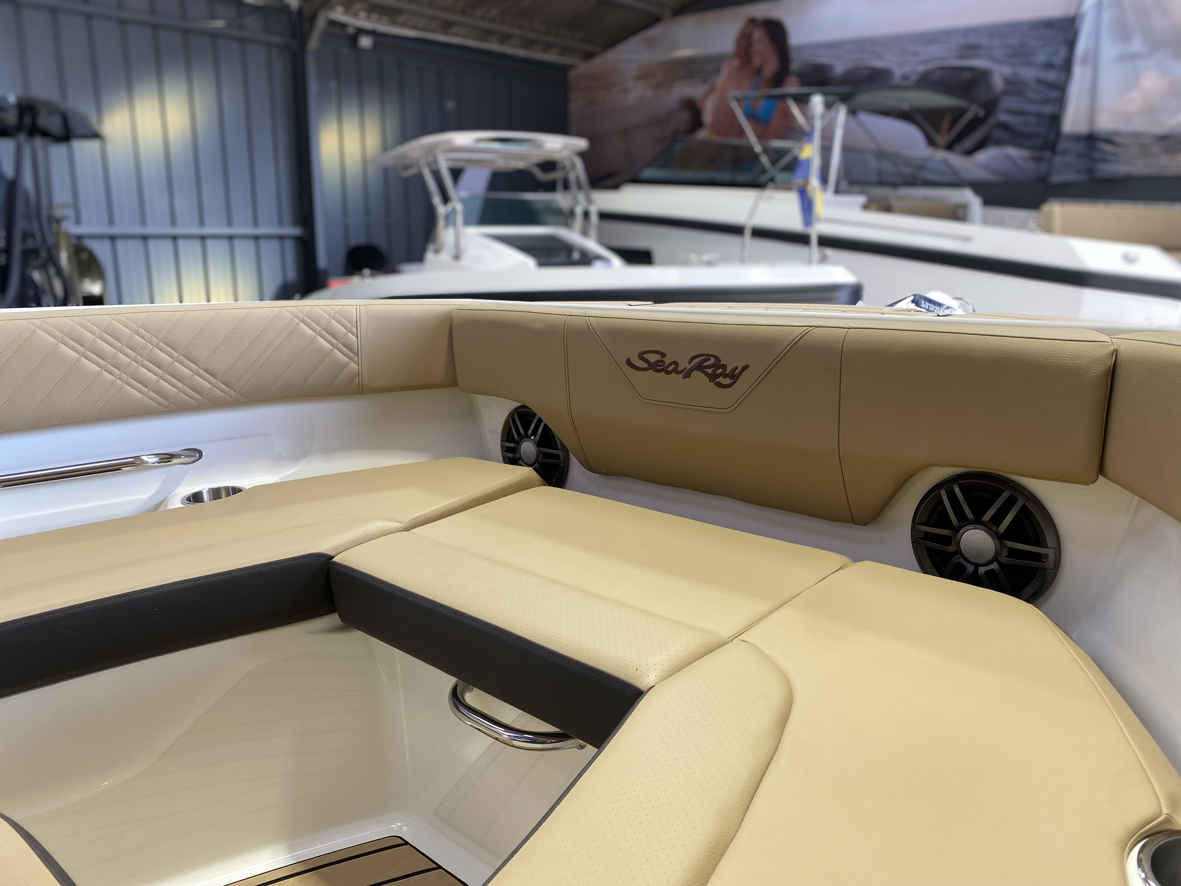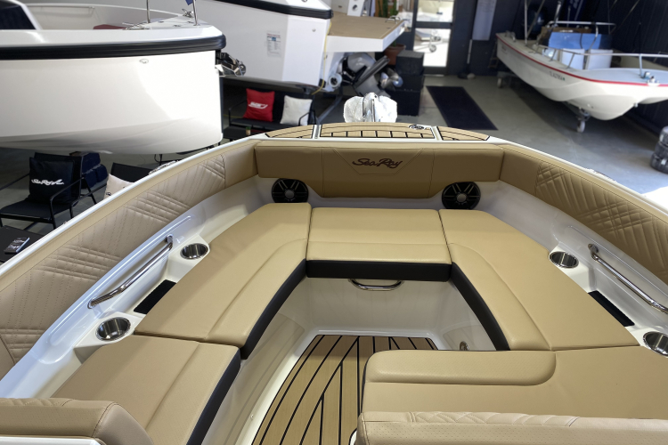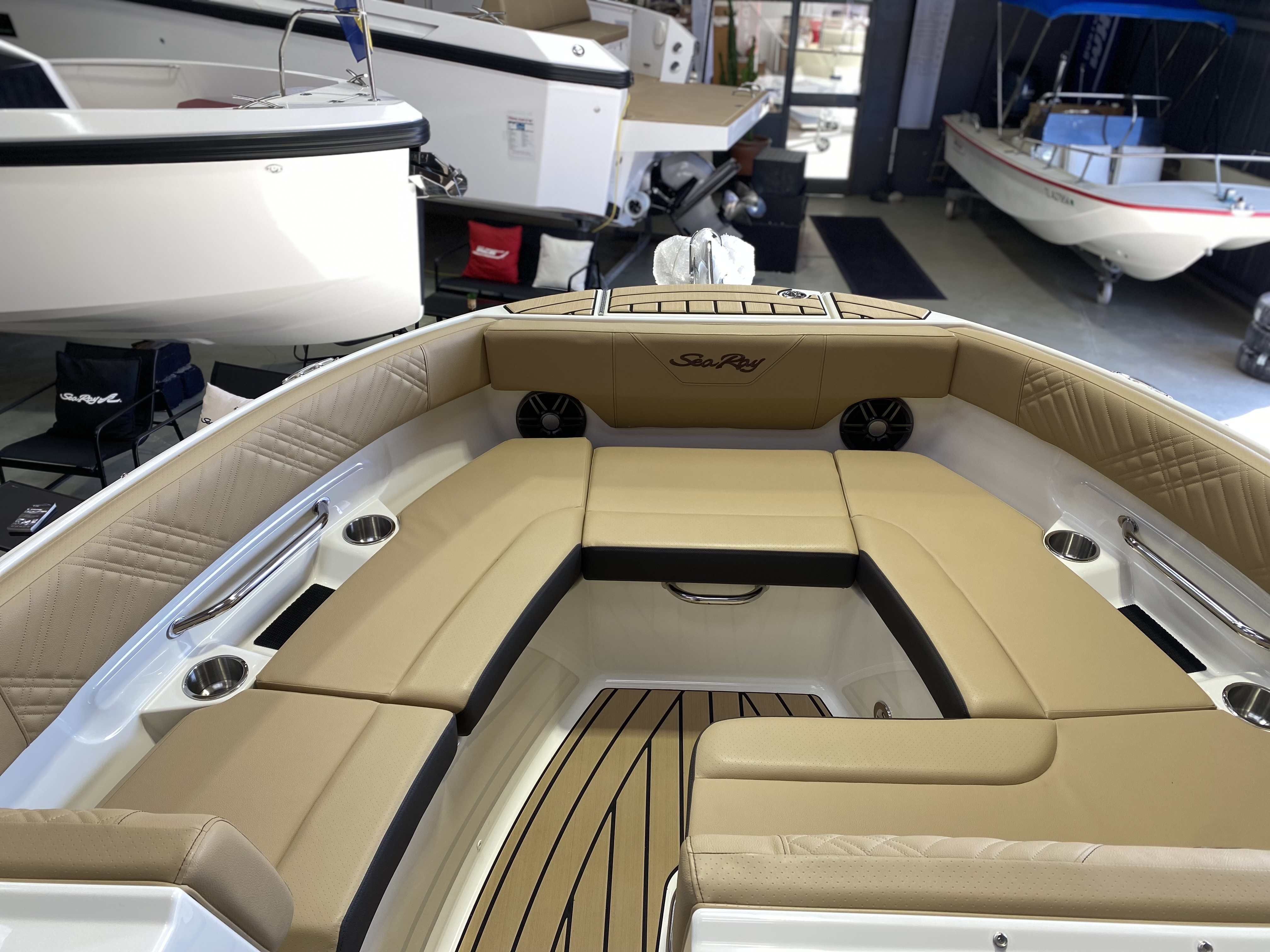 Configuration : Runabout avec salon avant et grand bain de soleil arrière. Vaste cockpit très convivial, console bâbord. Coffres de rangement sous tous les sièges.