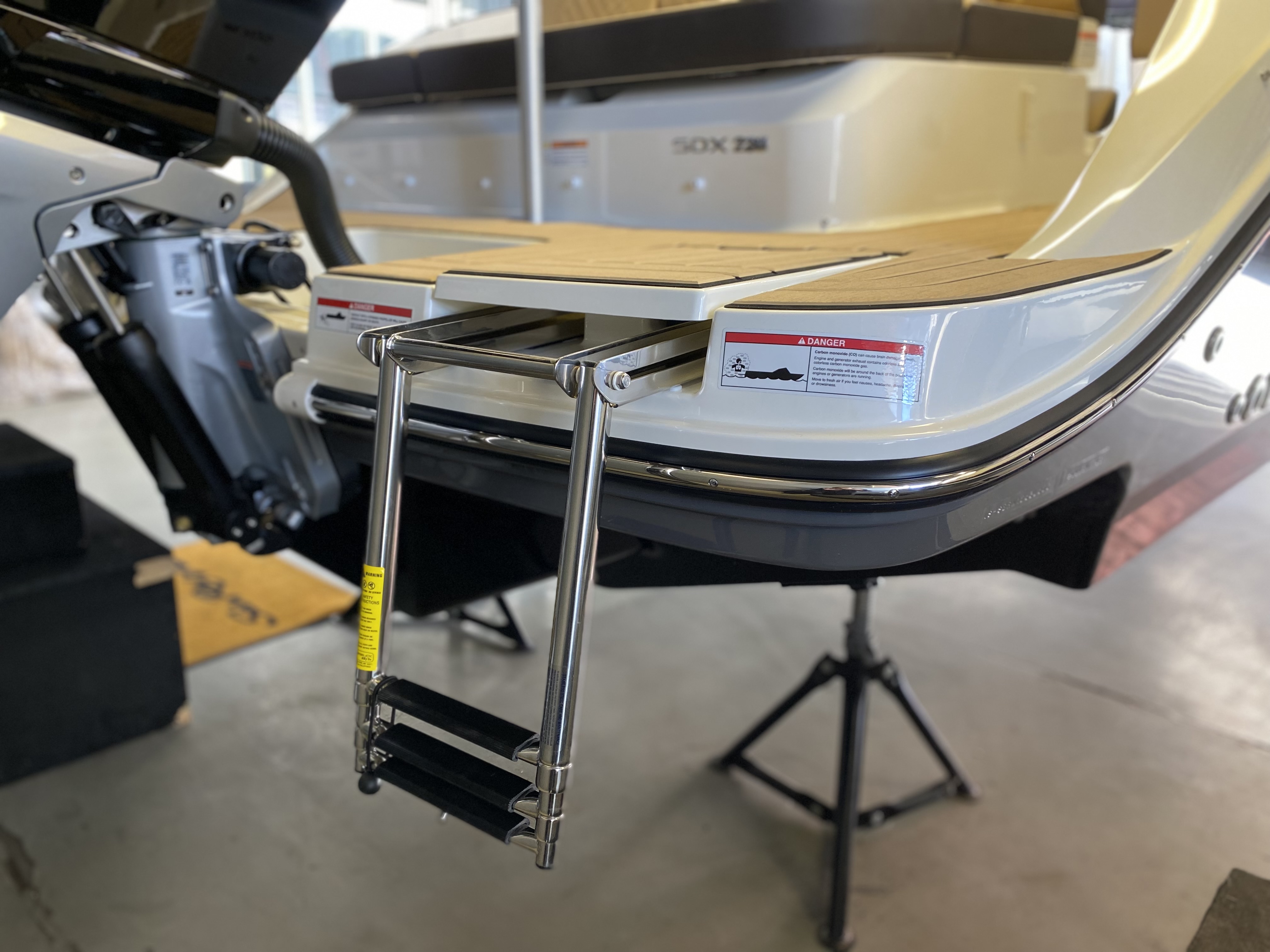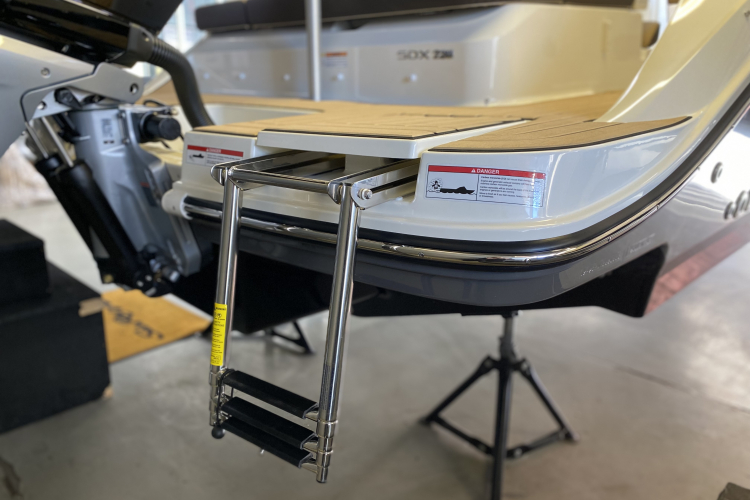 - Pack essentiel : taud de protection avant et cockpit, attaches pare battage, seadeck sur plateforme de bain, porte pavillon
