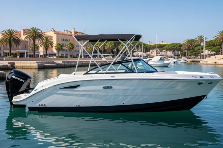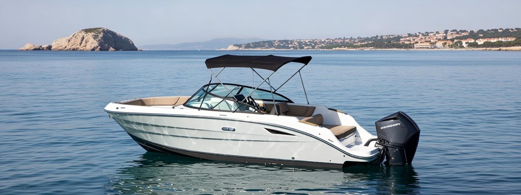 Motorisation : MERCURY V8 250 cv Hors Bord 4 temps, commandes électriques.