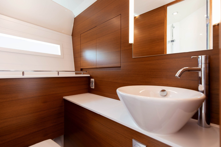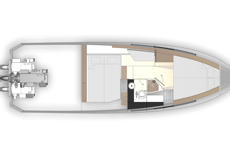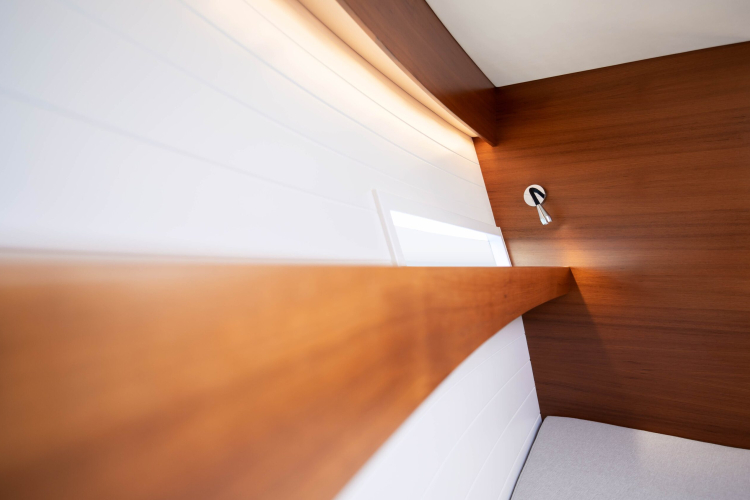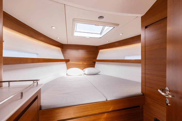 Chaque détail du Delta 33 Open a été pensé pour maximiser le confort et la praticité. Les intérieurs, réalisés à la main, reflètent l'excellence du design scandinave, avec des lignes épurées et des matériaux de haute qualité. La grande plateforme arrière est équipée d'une douche, idéale pour se détendre après une journée en mer, tandis que le salon extérieur se transforme facilement en un confortable bain de soleil.